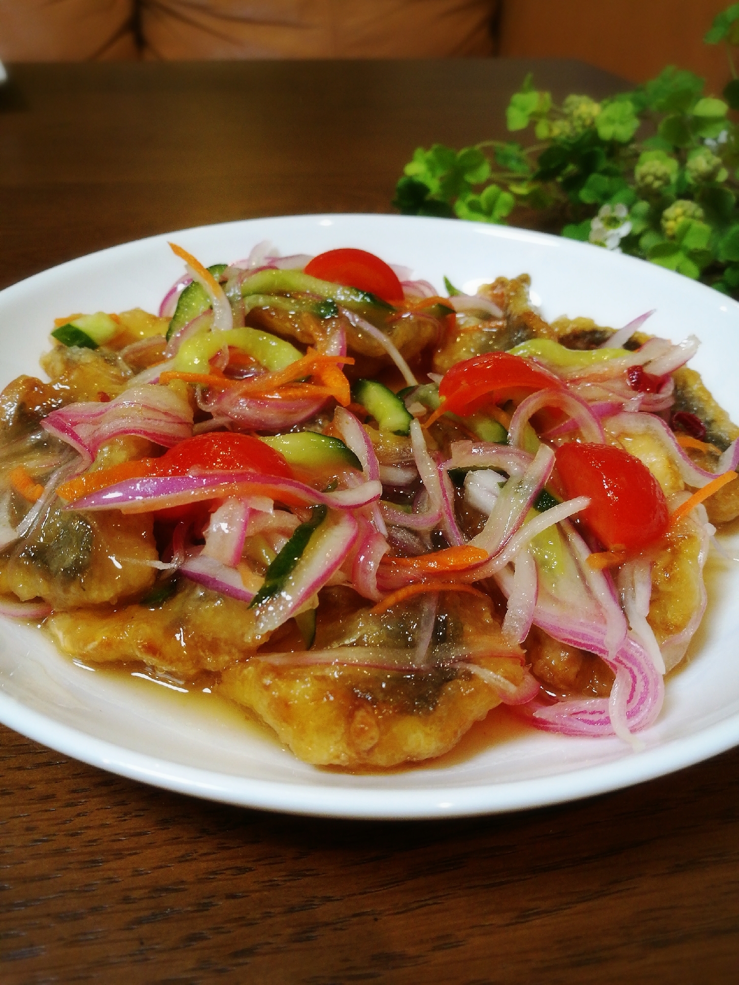 魚の下ごしらえ不要♬お惣菜の魚竜田揚げを使って時短簡単に美味しい南蛮漬けのおかずを作ってみませんか