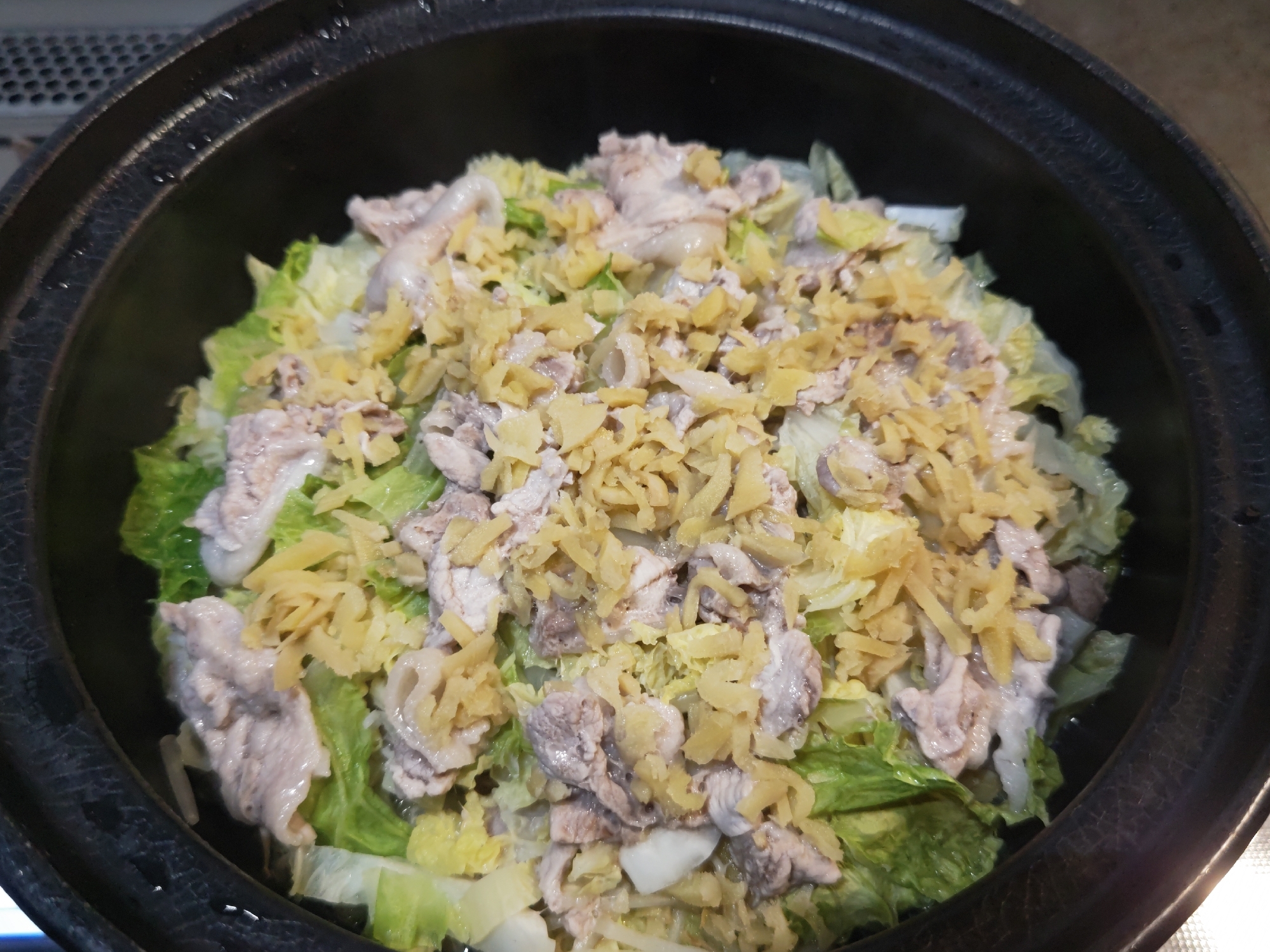 白菜と豚ばら肉の黄金コンビ鍋です(*´꒳`*)シンプルな味付けですが、しっかり味が付いているのでタレは不要です♫