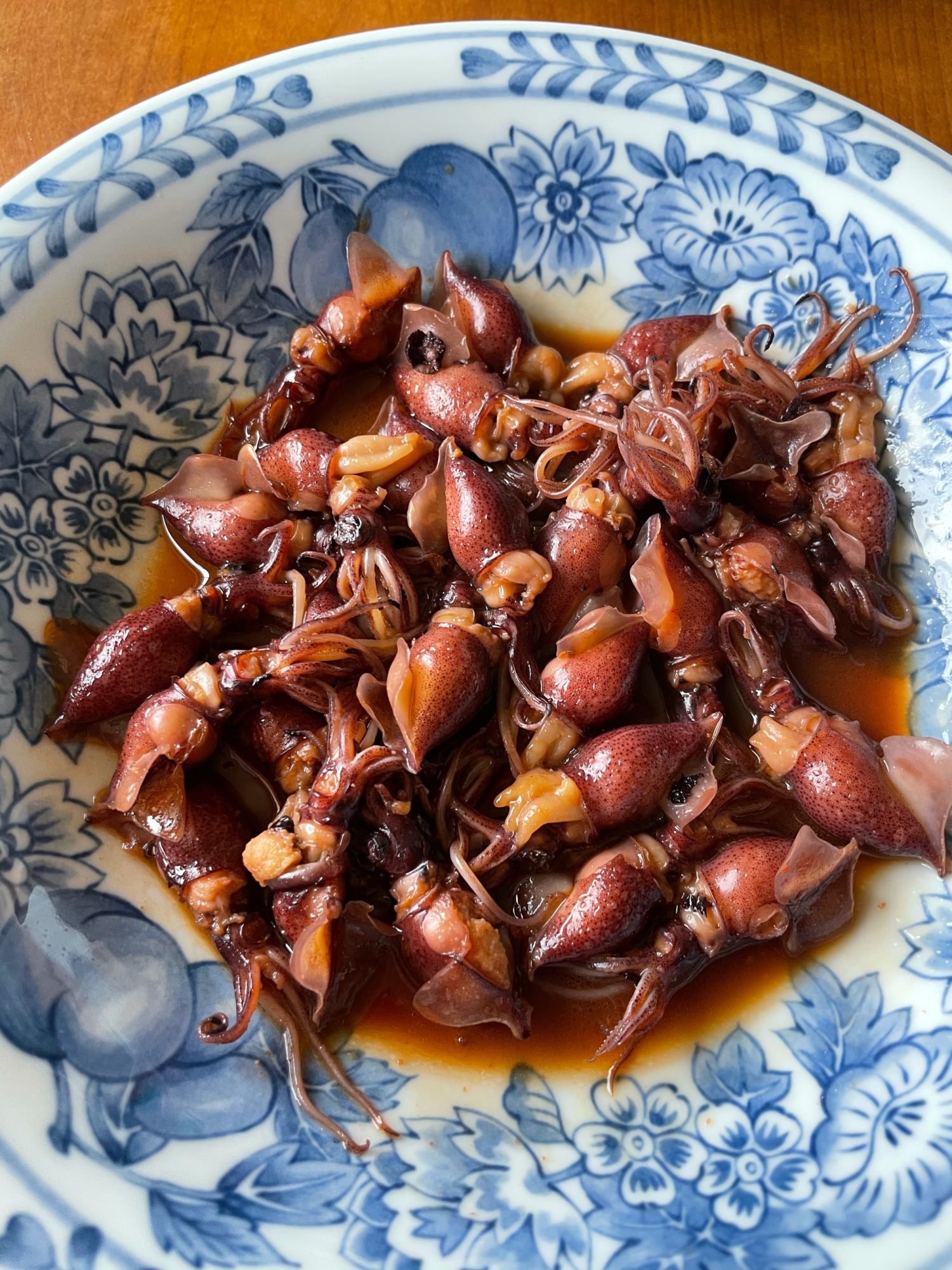 生の豆いかを下茹でしてから軟骨などを取り除いて下処理をします。