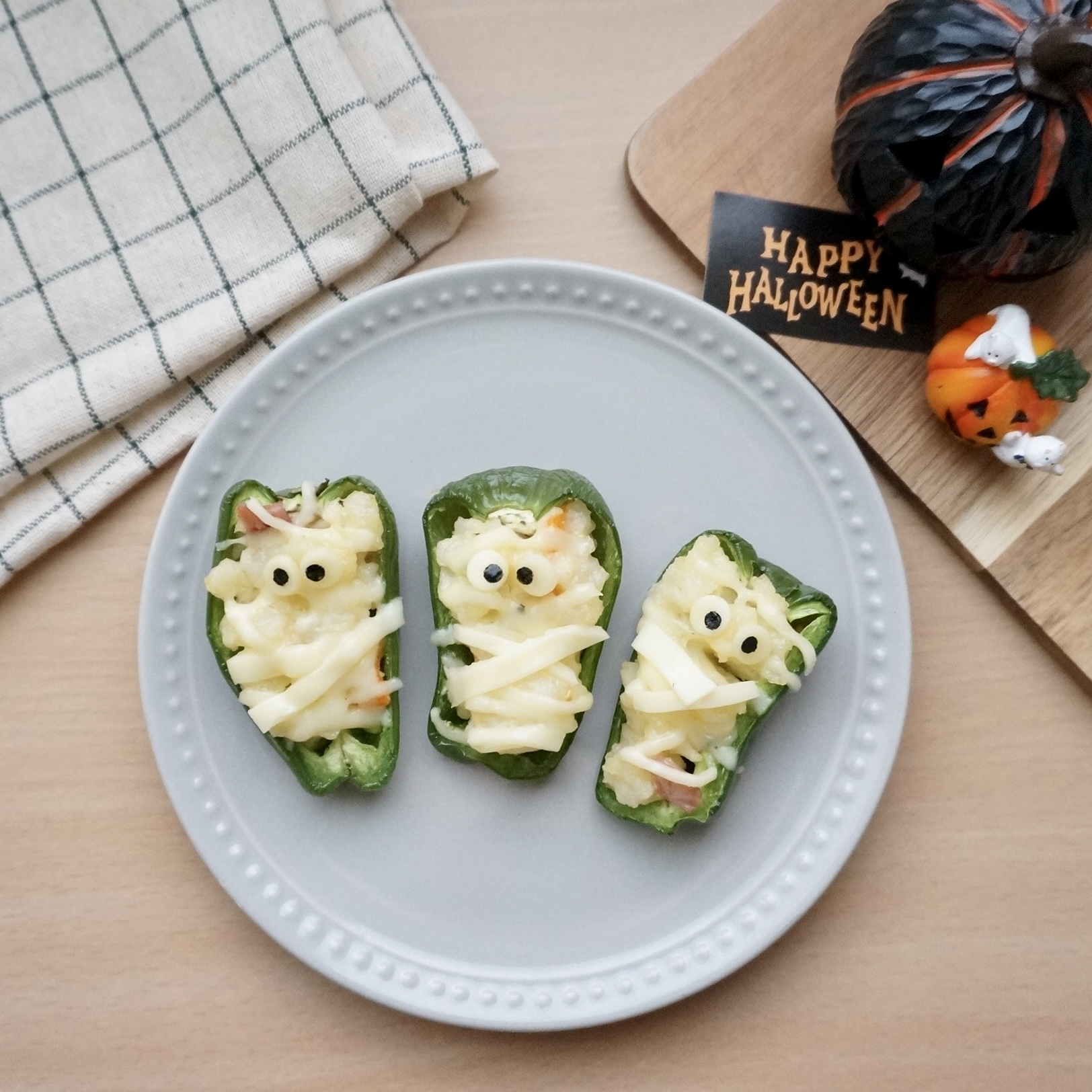 ハロウィンパーティーにぴったりかわいいミイラ風ピーマンカップ!当日でもすぐに作れる簡単レシピ♪
