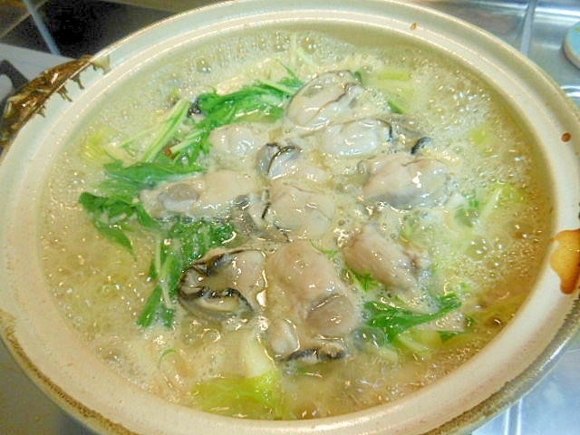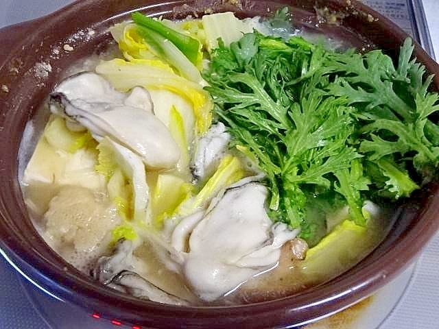 牡蠣エキスが旨い味噌鍋でほっこり~温まります♪汁が残ったら翌日は雑炊にね☆