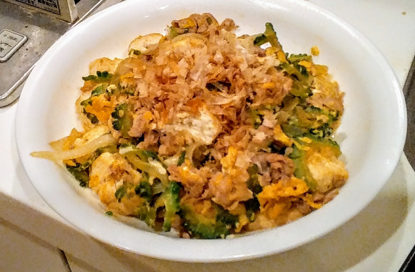 めんつゆを基本にバターとしょう油で味付けする、ゴーヤーチャンプルーのレシピです。(作例は豆腐なしで調理しています)