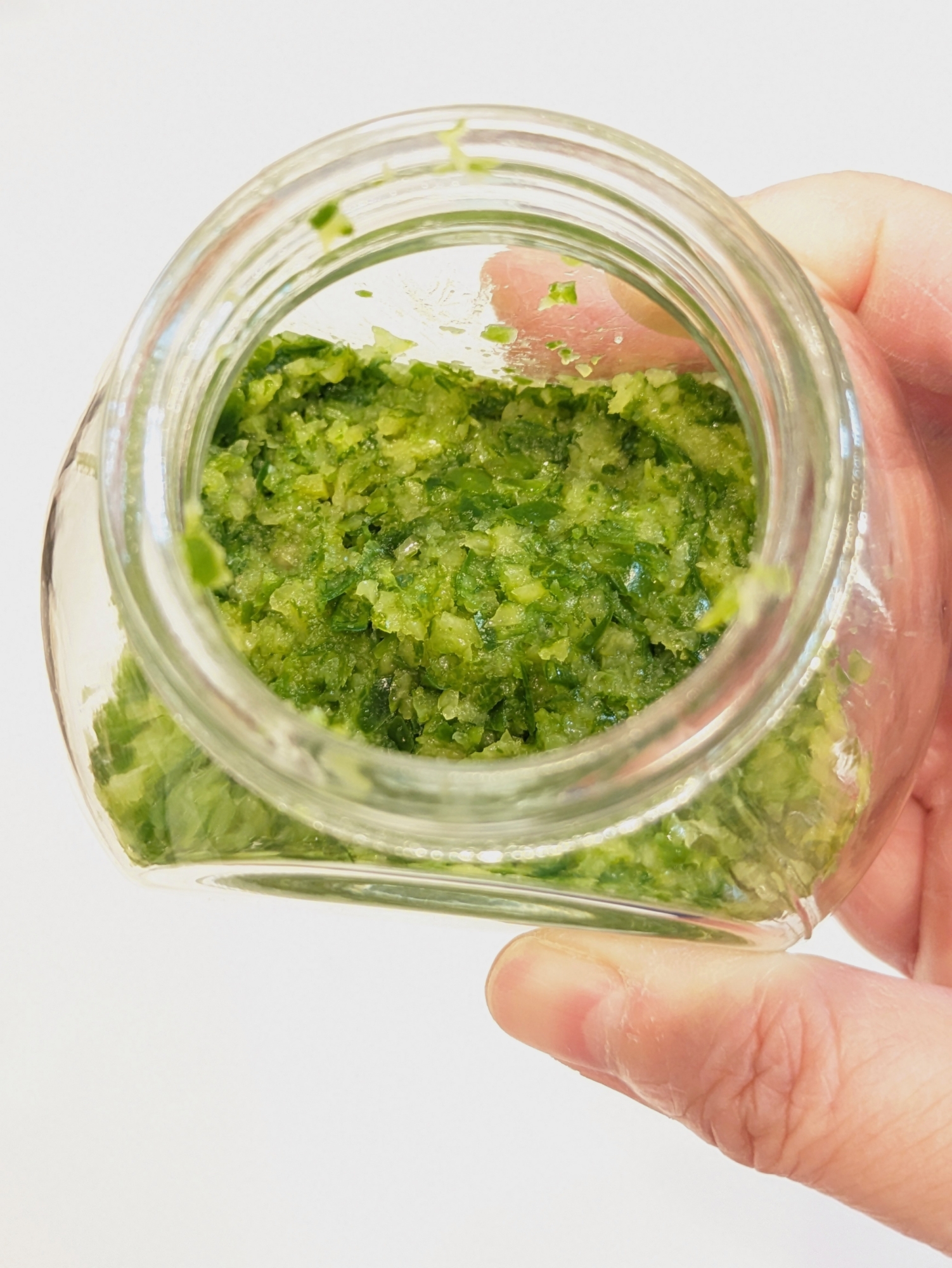 黄金比率は1:1:20%らしいのですが私は辛いのが少し苦手なので「青柚子の皮と青唐辛子と美味しいお塩」で1:0.8:重量の20%の比率で作っています。