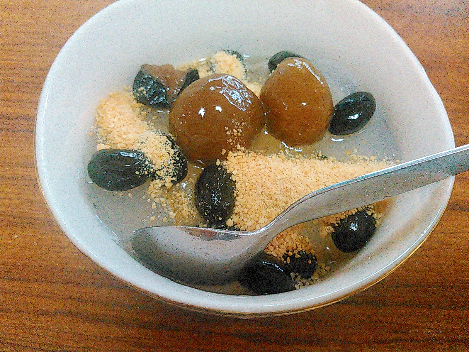 梅干しをかるく塩抜きして甘煮にします、数日ねかせると種まで甘くなります