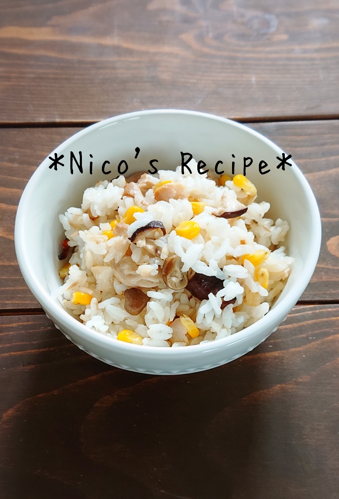 さつまいものホクホク感とコーンの食感が楽しめる簡単炊き込みご飯です。