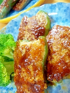 豆腐を入れてかさ増し&ヘルシーなピーマン肉詰め。今回は甘辛醤油味にしたけど、ソースはお好みで♪※2024.10月29日 焼き方のレシピを少し変更しました。