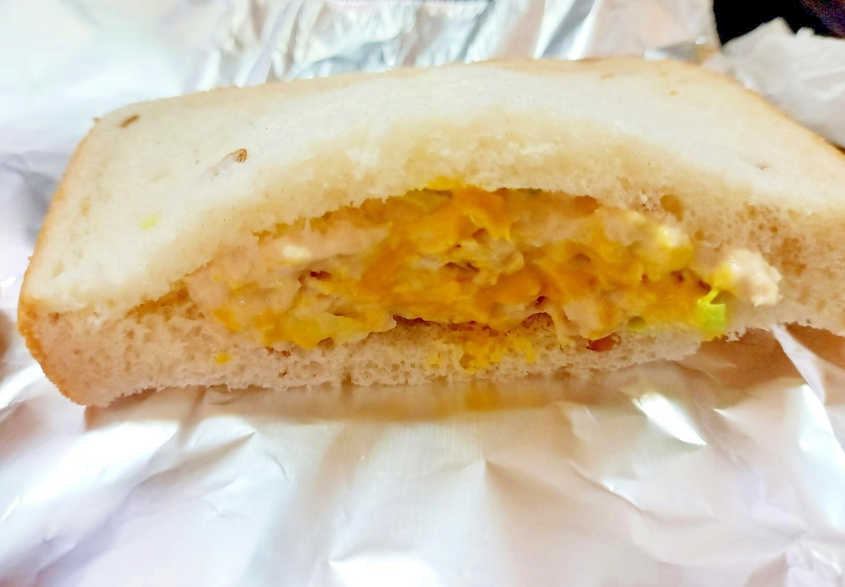 自分用に作ったツナマヨサンド。辛いのが好きなので辛子多めで^^