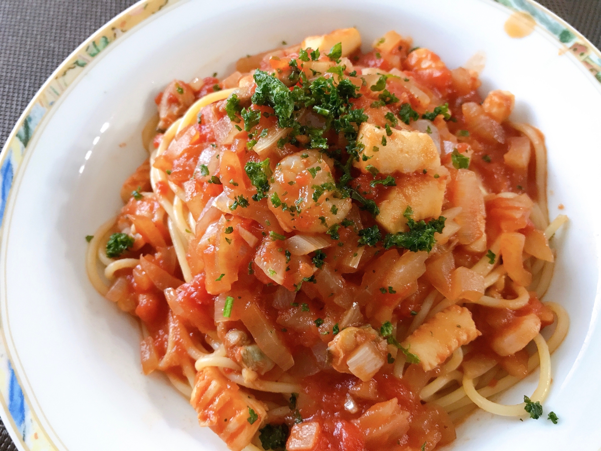 シーフードの旨みたっぷりᕷ*シーフードミックスを解凍したら超特急でできちゃう♡なのに…お味は本格的なペスカトーレです(๑•̀ㅂ•́)و✧