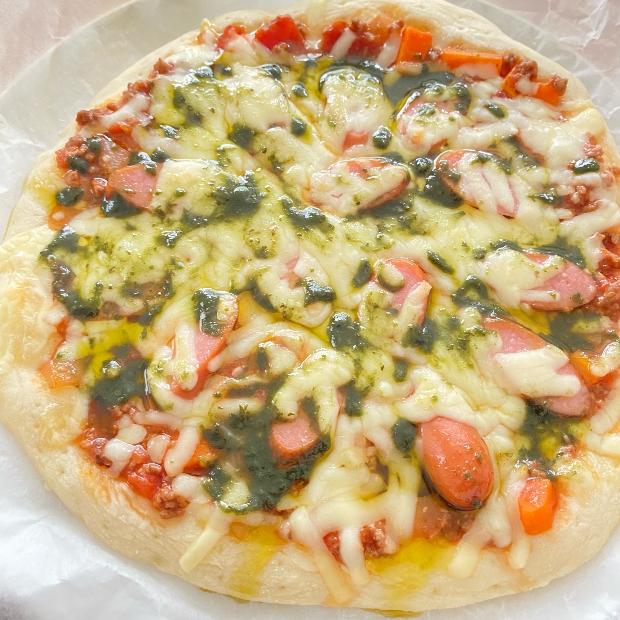 ピザ生地レシピID:1130013749参照ミートソースレシピID:1130013938参照パスタ用のバジルソースをかければ、お店の味!!