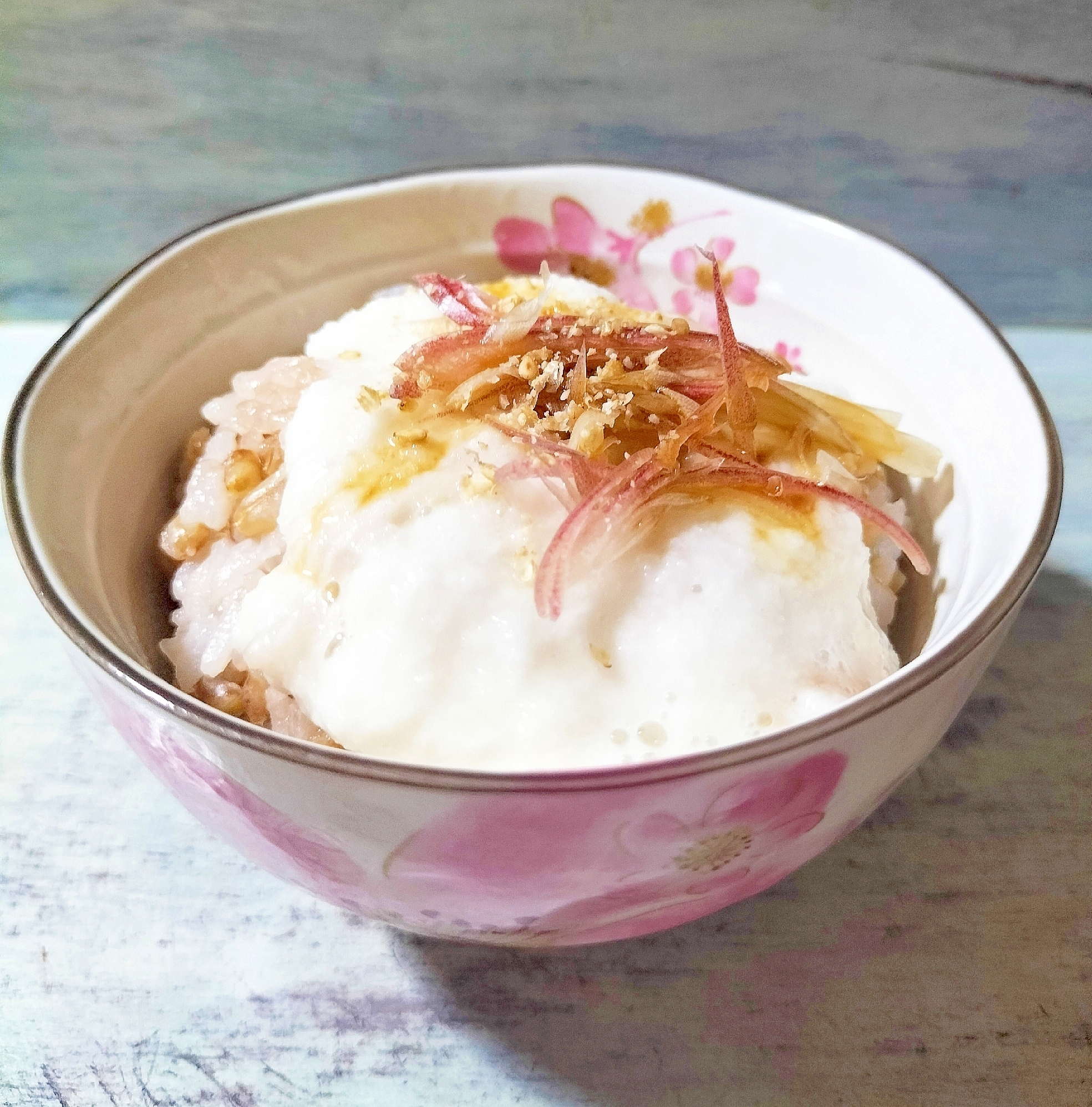いつもの冷や飯で作るお粥です。前の晩からご飯を水につけておきます。急なときは一度水で揉み洗いして火にかけます。水の量は目安で途中足りなくなったお湯を足します。