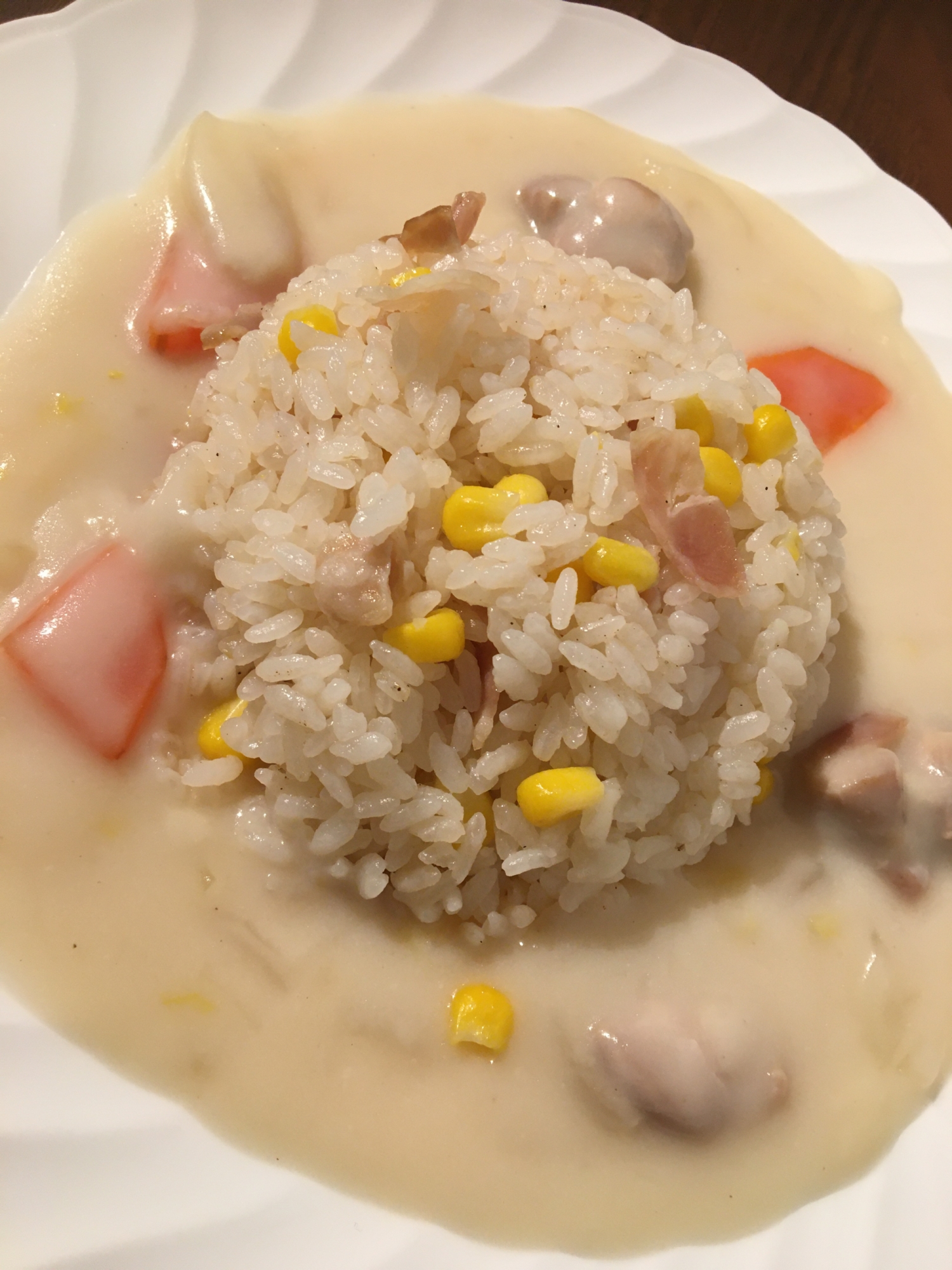 入れてスイッチオンで出来上がり♪そのまま食べても美味しいですが、我が家はシチューの時は必ずこのバターライスを作ります^_^