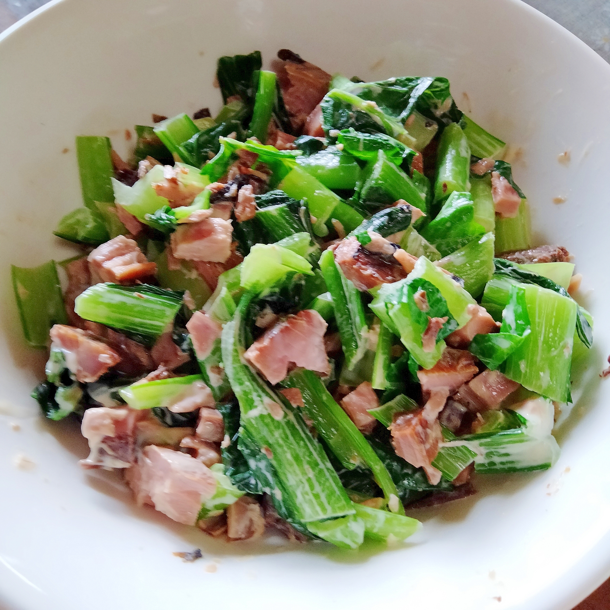小松菜とカニカマにごまマヨが合うんですᕷ*.°レンジで簡単なのであと1品や速攻おつまみにぴったり(๑•̀ㅂ•́)و✧甘めのごまマヨは大人も子供も大好きです♡