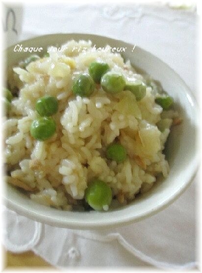 先に茹でておいたグリンピースは、炊き上がりと同時に加えると、緑色の色鮮やかな豆ご飯が出来上がります。