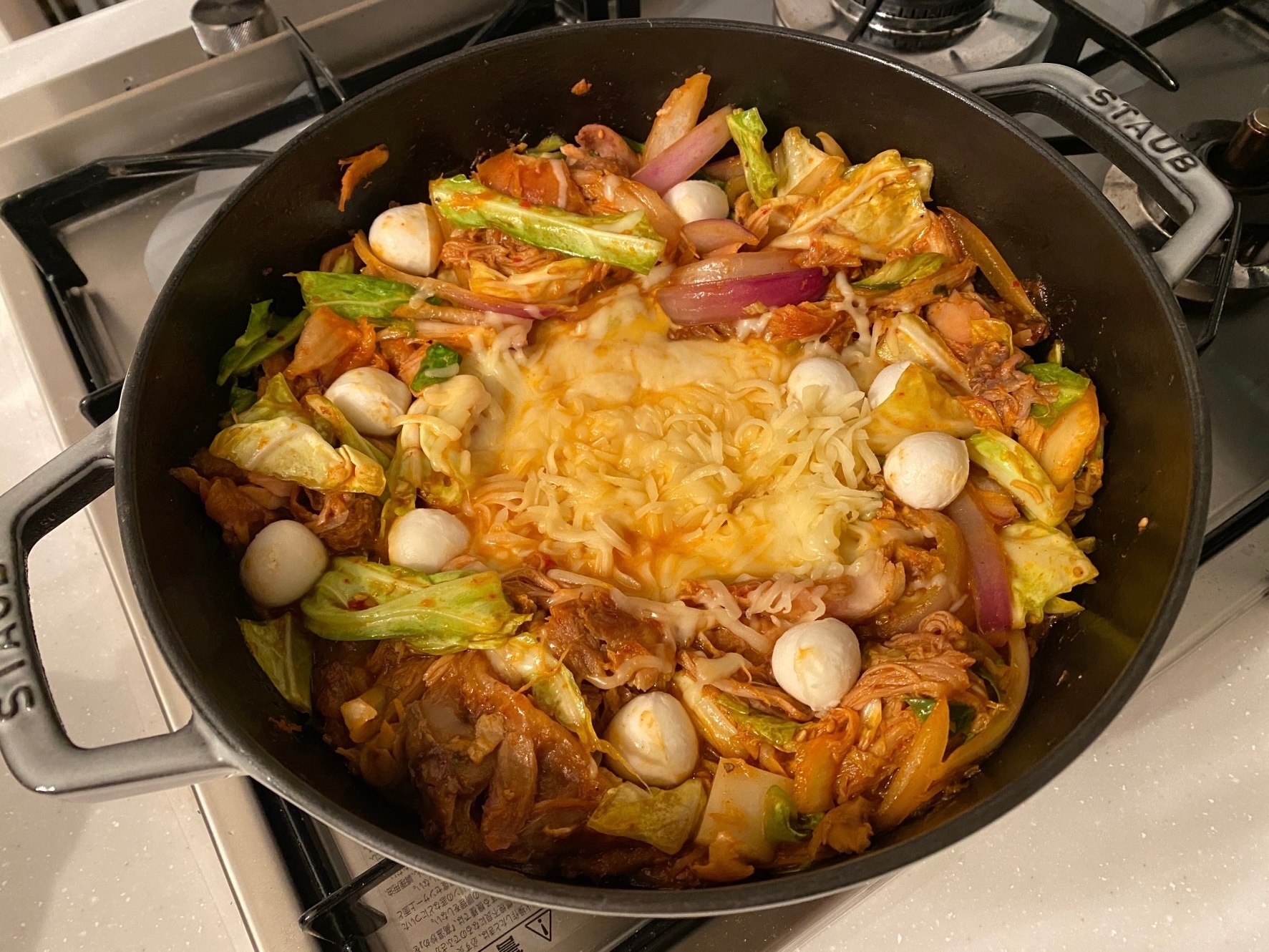 SNSで噂のチーズタッカルビ♡辛みそのたれとチーズが絶妙に絡みとってもおいしい^^