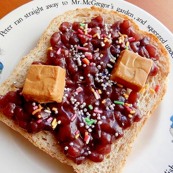 餡トーストから、バターを省いて(使っても)、可愛くしてみました❤・・❤おうちにある物でOK♪(きなこもちの画像アリ)