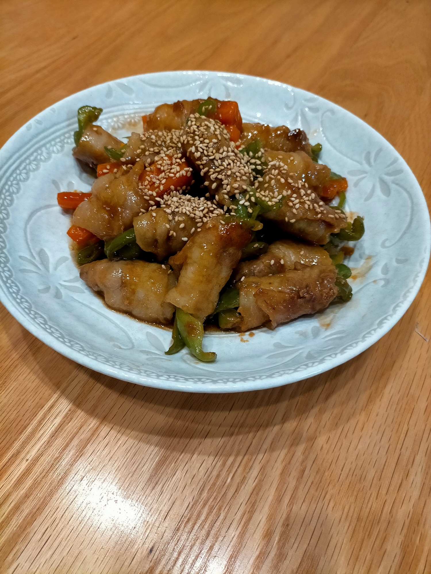 しゃぶ肉は、巻き易くて早く火が通るのですが、代用可です❤・・❤二度手間のような「おかず」は余り作らないのですが、お弁当持参の方の為にも♪