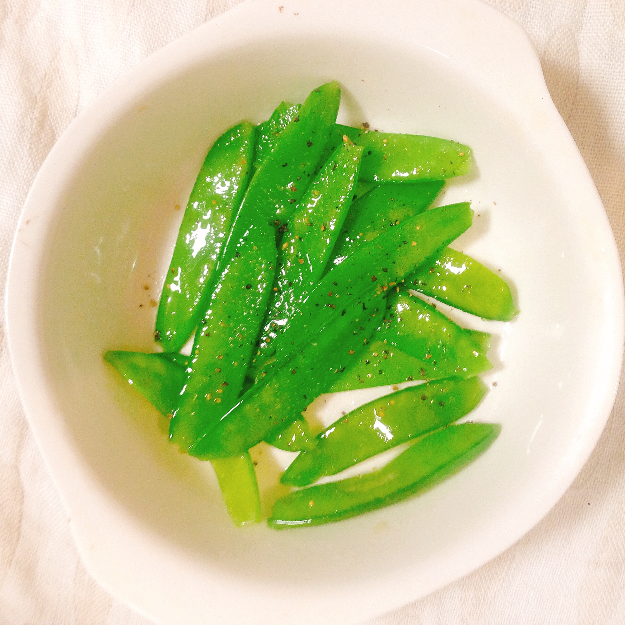 いつもは彩りに使われる絹さや。こちらのメニューでは絹さやが主役です(*^^*)パリパリとおやつ感覚で頂けます!