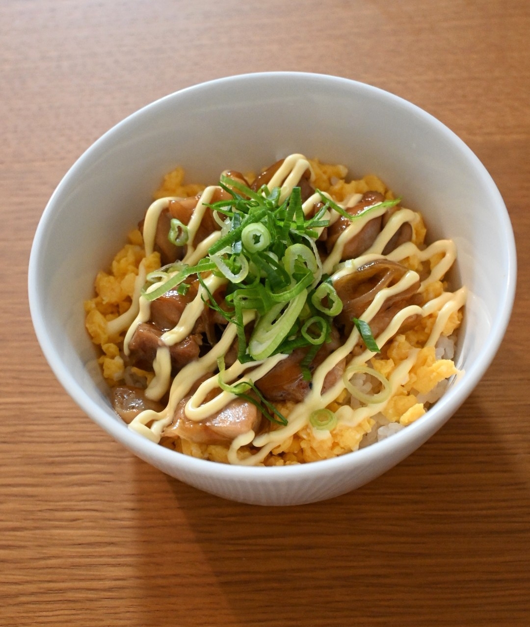 卵そぼろが簡単にポロポロになるレシピです!彩り良い照り焼きチキンマヨ丼です!