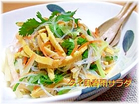 パクチーたっぷり。冷蔵庫の残り野菜ごっそりとー。酸味の利いたサラダです。ナッツが香ばしい。