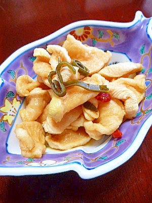 大根を干して昆布と唐辛子のめんつゆに漬け込み、美味しい漬け物になりました。干した事により、大根はポリポリの食感になります。