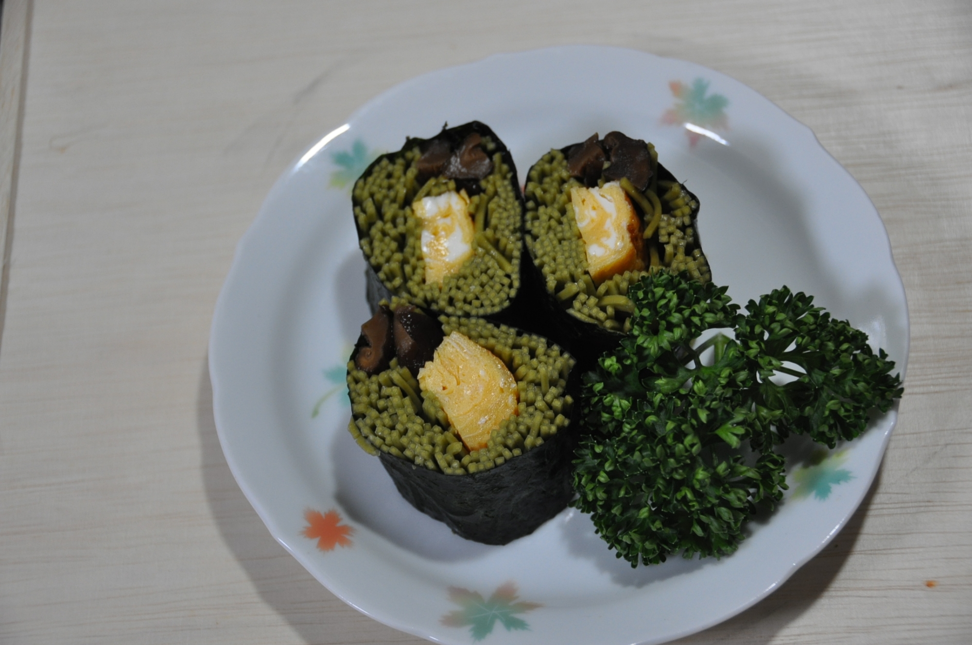 生蕎麦をバラバラ茹でて寿司酢をかけてから巻くんです!蕎麦を束ねて茹でなくてもキッチリ巻けます!蕎麦アレルギーデビューしたので製作は母、娘は撮影と指示のみです。